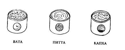 ТРИДОША - три телесных составляющих: вата (воздух), питта (огонь) и капха (вода), которые управляют психосоматической деятельностью повседневно.