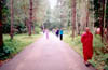 В другой раз, мы ходим гуськом по асфальтовой дорожке в медитации при ходьбе. Все очень плавно и размеренно: правая нога поднимается, вперед, опускается, тело вперед, левая нога поднимается, вперед, опускается, тело вперед и т.д. Когда мы проделываем эти замысловатые движения мимо нас проходят отдыхающие и в недоумение разглядывают нашу технику передвижения. И вот как-то утром, Саду выходит из домика, а к нему подходит мужчина и кланяется в ноги. Саду начинает спрашивать его в чем дело. Оказывается, вчера этот мужчина со своей женой мирно прохаживались мимо нас во время медитации при ходьбе. Решив, что это какая-то лечебная гимнастика, женщина решила попробовать ее на себе. Она мучилась от боли в спине. И вот, когда нас не было, муж с женой расхаживали на нашем месте, повторяя нашу технику ходьбы, и о чудо: боли в спине прошли.